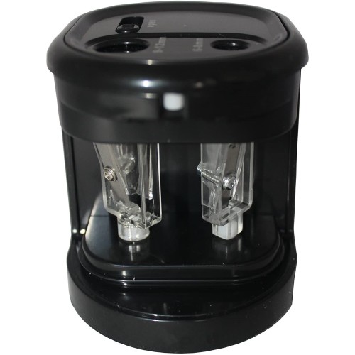 Kétlyukú, elemes elektromos ceruzahegyező fekete színben.