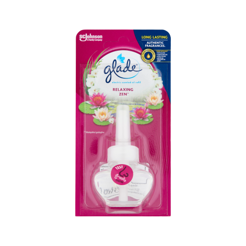 A GLADE Electric Scented Oil illatosító Relaxing Zen utántöltője kellemes, virágzó japán kertre emlékeztető, pihentető, virágos illattal árasztja el otthonodat. Alacsony intenzitás mellett az illat a helyiségben napi 12 órán át, akár 100 napig kitart. Egyszerűen csatlakoztasd a készüléket (illatosítót) egy konnektorba, állítsd be a kívánt illatintenzitást, és varázsolj elképzeléseid szerinti tökéletes légkört a helyiségben. A csomagolás illatosító készüléket nem tartalmaz.