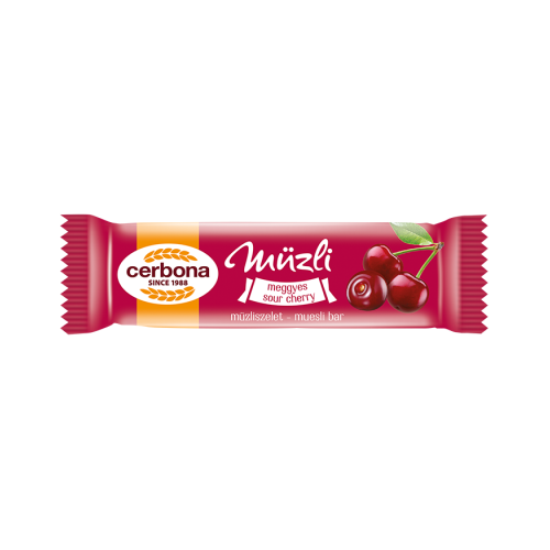 Meggyes müzliszelet. A Cerbona Meggyes müzliszeletet többfajta gabonapehely, méz, meggy és csokoládé darabok teszik igazán ellenállhatatlanná. Különös gondossággal olyan alapanyagokból állították össze, hogy a szervezetet értékes élelmi rostokkal lássa el. Hiteles tájékoztatás: Elkötelezettek vagyunk termékeink biztonságának garantálásáért, nyomon követjük a termékbiztonsággal kapcsolatos valamennyi európai uniós és hazai szabályozást és biztosítjuk termékeink azoknak történő megfelelését. Az EU 2023/988-as számú Általános Termékbiztonsági Rendeletét (GPSR) is alkalmazzuk, így ha a termékeink biztonságát illetően fogyasztóként kérdése, észrevétele van, vagy esetleg balesetről van tudomása, kérjük, írja meg nekünk.