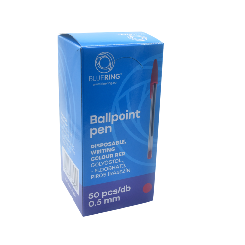 Golyóstoll eldobható kupakos Bluering®, írásszín piros