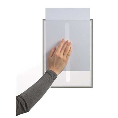 Feliratozási megoldás ívelt üvegfelületek számára: A statikusan tapadó információs tasakok alkalmasak arra, hogy ajánlatokat helyezzünk ki velük az autó ablakaira, kirakatokba, vagy kínáló pultok üveg felületeire. Információk kihelyezése ívelt, beltéri üvegfelületekre pl. autóablakok, könnyű dokumentumcsere a hátlapon elhelyezett kivágásnak köszönhetően