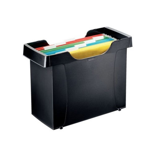 Formatervezett függőmappa tartó, amely könnyen hordozható és lehetővé teszi a függőmappatartók egymásra helyezését. A4-es méretű függőmappák tárolására alkalmas 5 db Leitz Alpha függőmappával szállítjuk (vegyes színek) Kis helyet foglal Lowered front for easy readability of tabs Fogantyú a könnyebb horhozhatóság érdekében Egymásra helyezhető Katalóguskód: 35782