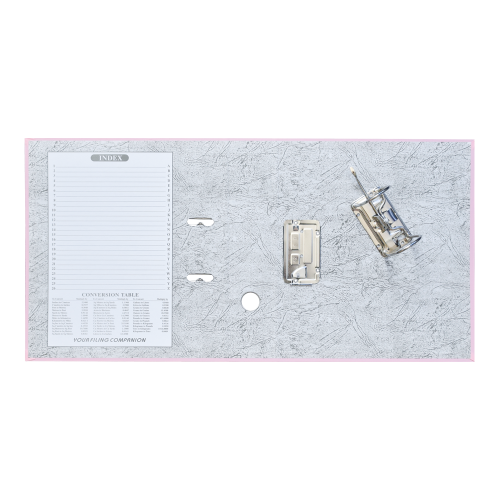 Emelőkaros iratrendező általános használatra. Kívül PP, belül fehér karton borítással, kihúzólyukkal. Cserélhető gerinccímke a feliratozáshoz. Tárolókapacitás 500 lap (A4 80gr.). A terméket lapra szerelve szállítjuk, a mellékelt emelőkaros szerkezet bepattintása gyors és egyszerű, 5 másodperc alatt elvégezhető és iratrendezőnk máris használatra kész! Katalóguskód: 12066