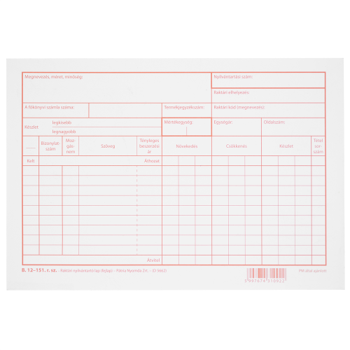 Raktárkészlet nyilvántartólap A5 B.12-151