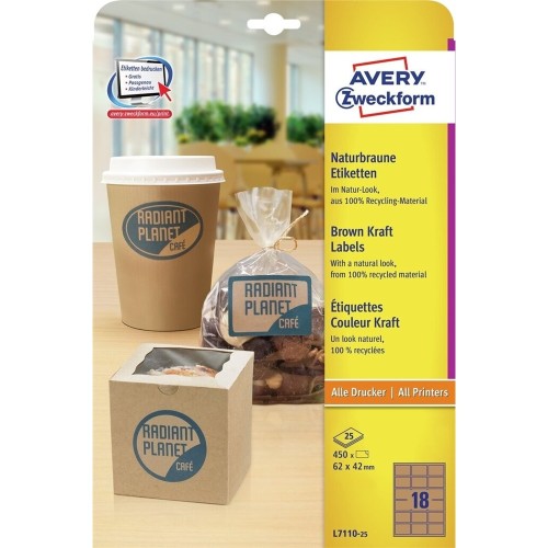 Etikett címke, 62 x42mm, környezetbarát 18 címke/lap, 25 lap/doboz, Avery barna