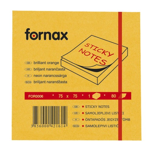 • Jegyzettömb öntapadó, 75x75mm, 80lap, Fornax neon narancs