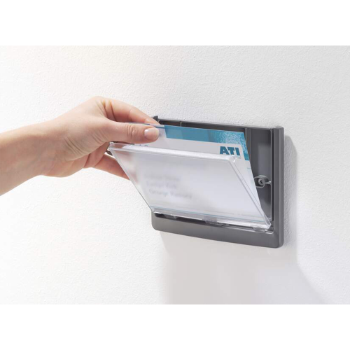 Irányítótábla, stílusosan megtervezett, lekerekített sarkokkal, így a modern design funkcióval párosul. Az insertek könnyedén cserélhetők az átlátszó panel kihúzásával. Ideális megoldás olyan helyeken, ahol az információkat gyakran kell cserélni, mint például hotelekben, konferencia termekben, kórházakban. Nyomtatható insertek külön kaphatók. Katalóguskód: 51743