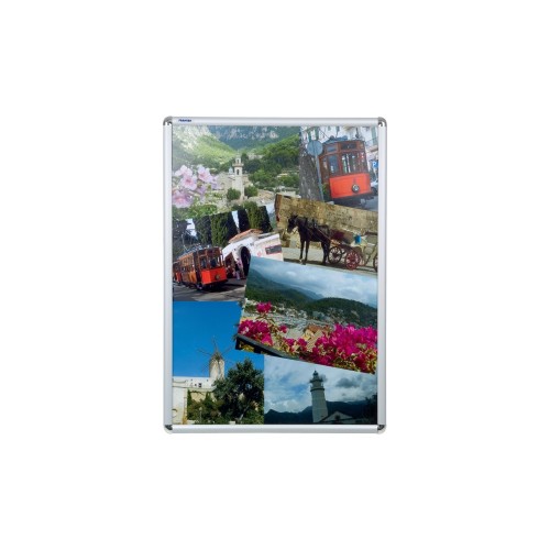 Elegáns 25 mm széles eloxált aluminium képkeret a dokumentumok és poszeterek egyszerű és biztonságos cseréjéhez. A keret függőlegesen és vízszintesen is felszerelhető / szereléshez szükéseges tartozékokat tartalmazza /. PVC lap UV-szűrővel védi a dokumentumokat. 94x128x2
