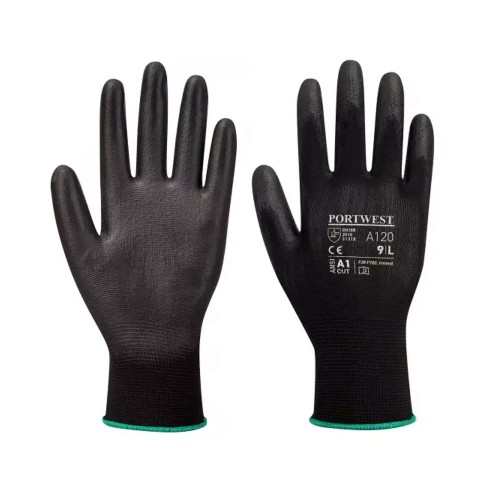 Kesztyű precíziós PU mártott tenyérrel S-es méret A120 Portwest fekete
