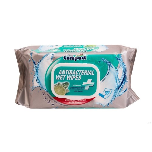 Ultra Compact antibakteriális nedves törlőkendő, bőrgyógyászatilag tesztelt, alkohol- és parabénmentes nedves törlőkendő. Praktikus visszazárható csomagolásban.