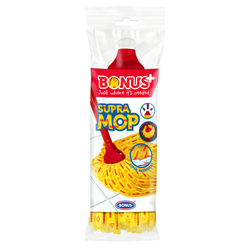 Vár a terasz, az udvar és a garázs felmosása, de rizikós nekiállni a hagyományos beltéri, érzékenyebb felmosófejjel? A BONUS+ SupraMOP-ot pontosan az ilyen helyzetekre találtuk ki. Strapabíró, erős és tartós termék, melyet kifejezetten a durvább, érdesebb felületek hatékony felmosására fejlesztettünk. Titka a vastag szálakban rejlik, melyek garantáltan nem szöszölnek az intenzív igénybevétel során sem. Alapanyaguk 50% viszkóz és 50% poliészter, melynek köszönhetően óriási nedvszívó képességgel rendelkeznek. Ez különösen fontos, ha nagyobb, durvább felületeken szeretnénk felitatni a folyadékot.