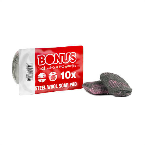 Gondoltunk már arra, milyen jó lenne, ha a takarításhoz elég lenne csak a dörzsit megfogni, és anélkül súrolhatnánk vele, hogy tisztítószereket kellene hozzáadni? A BONUS szappanos dörzsipárna egy különleges termék, melyet pontosan erre találtunk ki.