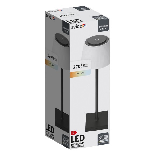 A kompakt és energiatakarékos Avide LED asztali lámpa ideális választás tanuláshoz, munkához vagy általános asztali világításhoz. USB tápellátásának köszönhetően könnyen használható számítógépről, power bankról vagy USB adapterrel. Modern, letisztult kialakítása bármilyen íróasztalon jól mutat.