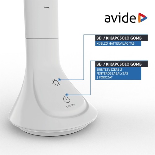 Az Avide LED Asztali Lámpa  modern és praktikus világítási megoldás otthonra vagy irodába. Az 5W teljesítményű, energiatakarékos LED fényforrás 280 lumen fényerőt biztosít.  Az érintésvezérlő panelnek és a beépített akkumulátornak köszönhetően kényelmesen használható, a minimalista fehér design pedig könnyen illeszkedik bármely enteriőrbe. Emellett a lámpa beépített naptár funkcióval is rendelkezik, így mindig nyomon követheted az időt és a dátumot. A könnyen kezelhető kapcsolóval és állítható nyak segítségével könnyedén irányíthatod a fényt a kívánt irányba. Az Avide LED Asztali Lámpa  Naptár Fehér 5W tökéletes választás a praktikus és stílusos világításért.
