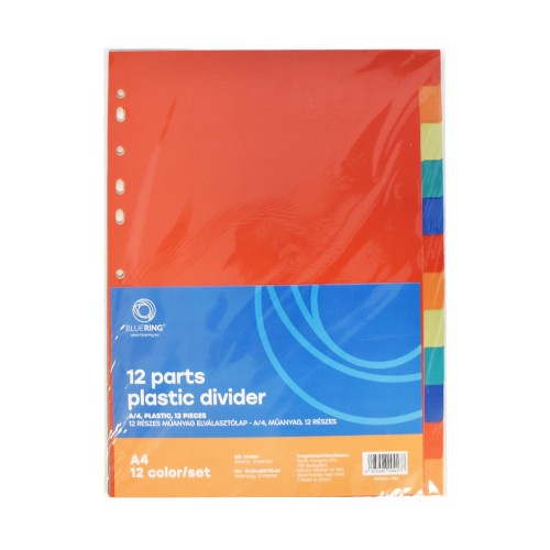 • Elválasztólap, színes műanyag 12 részes Bluering®