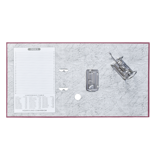 Emelőkaros iratrendező általános használatra. Kívül PP, belül fehér karton borítással, kihúzólyukkal. Cserélhető gerinccímke a feliratozáshoz. Tárolókapacitás 350 lap (A4 80gr.). A terméket lapra szerelve szállítjuk, a mellékelt emelőkaros szerkezet bepattintása gyors és egyszerű, 5 másodperc alatt elvégezhető és iratrendezőnk máris használatra kész! Katalóguskód: 11980