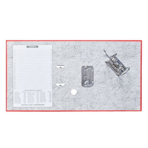 Emelőkaros iratrendező általános használatra. Kívül PP, belül fehér karton borítással, kihúzólyukkal. Cserélhető gerinccímke a feliratozáshoz. Tárolókapacitás 350 lap (A4 80gr.). A terméket lapra szerelve szállítjuk, a mellékelt emelőkaros szerkezet bepattintása gyors és egyszerű, 5 másodperc alatt elvégezhető és iratrendezőnk máris használatra kész! Katalóguskód: 12057