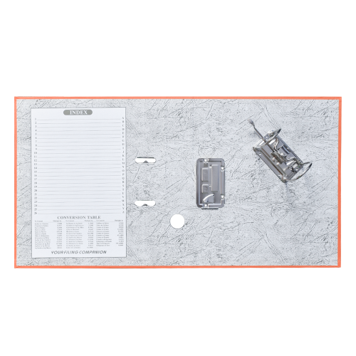 Emelőkaros iratrendező általános használatra. Kívül PP, belül fehér karton borítással, kihúzólyukkal. Cserélhető gerinccímke a feliratozáshoz. Tárolókapacitás 350 lap (A4 80gr.). A terméket lapra szerelve szállítjuk, a mellékelt emelőkaros szerkezet bepattintása gyors és egyszerű, 5 másodperc alatt elvégezhető és iratrendezőnk máris használatra kész! Katalóguskód: 26366