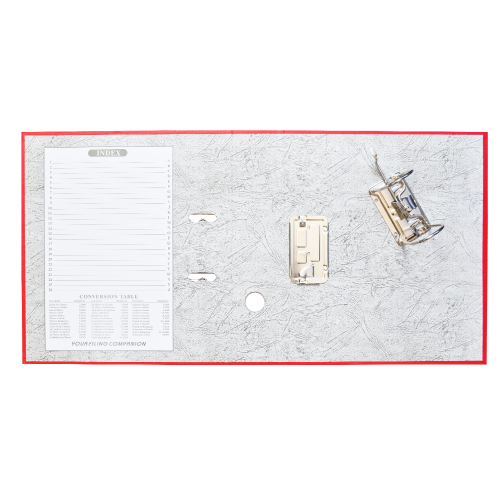 Emelőkaros iratrendező általános használatra. Kívül PP, belül fehér karton borítással, kihúzólyukkal. Cserélhető gerinccímke a feliratozáshoz. Tárolókapacitás 500 lap (A4 80gr.). A terméket lapra szerelve szállítjuk, a mellékelt emelőkaros szerkezet bepattintása gyors és egyszerű, 5 másodperc alatt elvégezhető és iratrendezőnk máris használatra kész! Katalóguskód: 12067