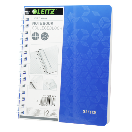 • Spirálfüzet A5, 80lap kockás Leitz Wow kék