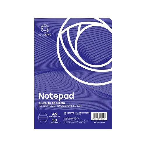 Jegyzettömb ragasztott, A5, 50lap, Bluering® vonalas