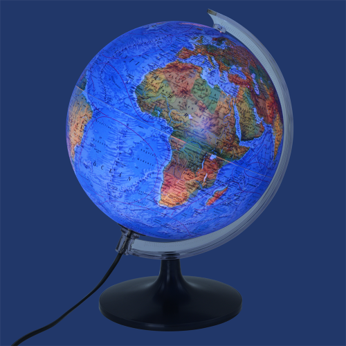 Földgömb 25 cm-es hegy-vízrajzi megvilágított