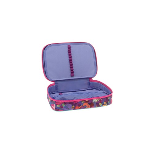 Többszintes, töltetlen, cipzáras tolltartó. Belül textillel bevont merev lapokkal, gumis kialakítással 30 ceruza számára az írószerek tárolásához és egy cipzáras belső zsebbel.