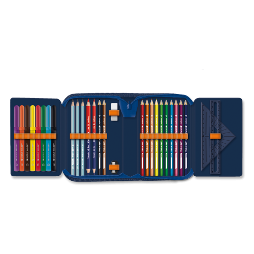 Írószerekkel töltött cipzáros tolltartó két kihajtható füllel, gumis kialakítással az írószerek tárolásához. Tartalma: 12 db színes ceruza, 3 db HB grafit ceruza, 1 vékony és 1 vastag postairón, 8 db színes filctoll, 1 db radír, 1 db hegyező, 1 db 17 cm-es egyenes vonalzó, 1 db háromszög vonalzó, órarend A és B hétre. Hiteles tájékoztatás: Elkötelezettek vagyunk termékeink biztonságának garantálásáért, nyomon követjük a termékbiztonsággal kapcsolatos valamennyi európai uniós és hazai szabályozást és biztosítjuk termékeink azoknak történő megfelelését. Az EU 2023/988-as számú Általános Termékbiztonsági Rendeletét (GPSR) is alkalmazzuk, így ha a termékeink biztonságát illetően fogyasztóként kérdése, észrevétele van, vagy esetleg balesetről van tudomása, kérjük, írja meg nekünk. GPSR: Ars Una Studio Kft., H-1113 Budapest, Csetneki u. 13.,webshop@arsuna.hu, https://arsuna.hu/