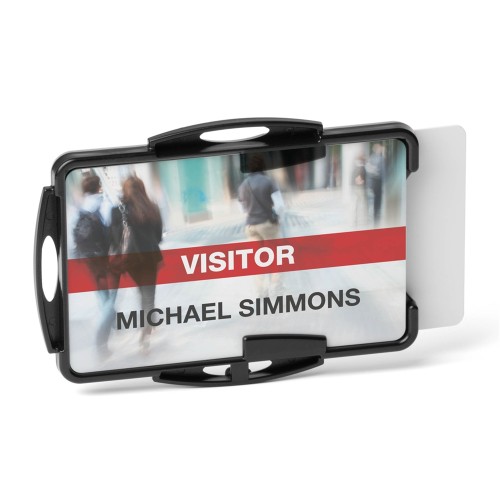 Nyitott kártyatartó egy vagy két kártya tárolására - Álló vagy fekvő formátumban is használható - Lánccal, textilszalaggal vagy kihúzható tartóval kombinálható Katalóguskód: 36882
