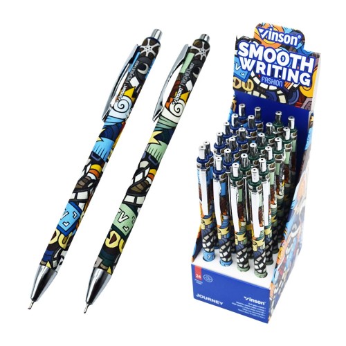Golyóstoll nyomógombos 0,7mm Vinson Journey K62 vegyes test displ 24 db/display