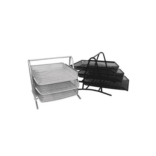 Fémhálós 3 részes irattálcák. Mérete: 278 x 350 x 275 mm. Könnyen összeállítható, csavarok a termék dobozában mellékelve, zsugorfóliázva. Tartós, fém alapanyag, munkahelyi és otthoni használatra is ideális Katalóguskód: 24359