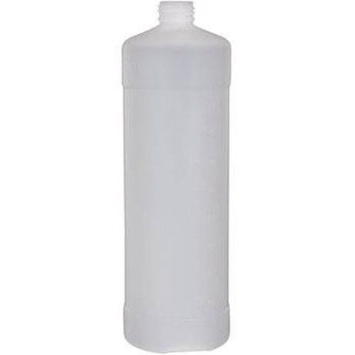 Áttetsző adagoló flakon az oldalán mércével. A flakon könnyen matricázható is, így kiváló választás takarítócégek részére tisztítószeres oldat kijuttatásához.