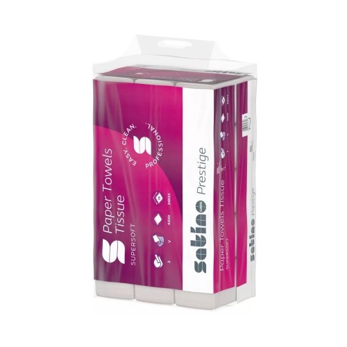 • Kéztörlő 2 rétegű V hajtogatású 336 lap/csomag 12 cs/karton Satino Wepa Prestige_278060 fehér