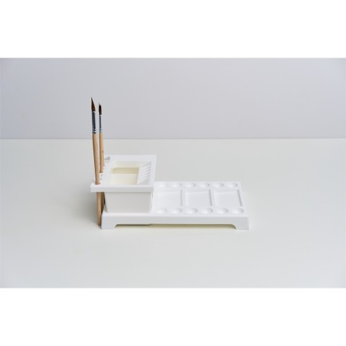 Festőpaletta négyzetes formában, ecsettartó és ecsetmosó résszel, fehér színű. Praktikus, kompakt az iskolai és otthoni festéshez. Strapabíró és könnyen tisztítható anyag. Nem deformálódik, stabilan áll az asztalon. Katalóguskód: 55664