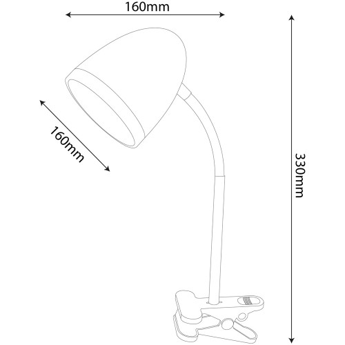 Asztali lámpa, csiptethető, E27, max. 15W, AVIDE, fekete