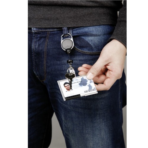Kihúzható névjegytartó nehéz kártyákhoz, vagy kulcsokhoz. A mágneses záródás lehetővé teszi a termék 300 g-ig történő terhelését. Fém rögzítéssel Kis kulcskarikával és megerősített patentos tartóvalSzakadásmentes zsinór, melynek hossza: 60 cm A beépített mágnes befolyásolhatja a kártyák olvashatóságátKatalóguskód: 27223