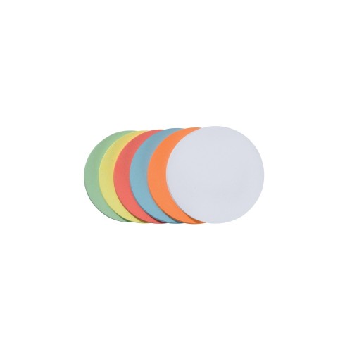130 gsm 100%-ban környezetbarát újrahasznosított papírból készült. Elnyerte a "Kék Angyal" ökocímkét. Válogatott színek. A kialakítás nem öntapadó. Kivitel: körök. Mérete: ? 9,5 cm.Csomag tartalma: 500 db